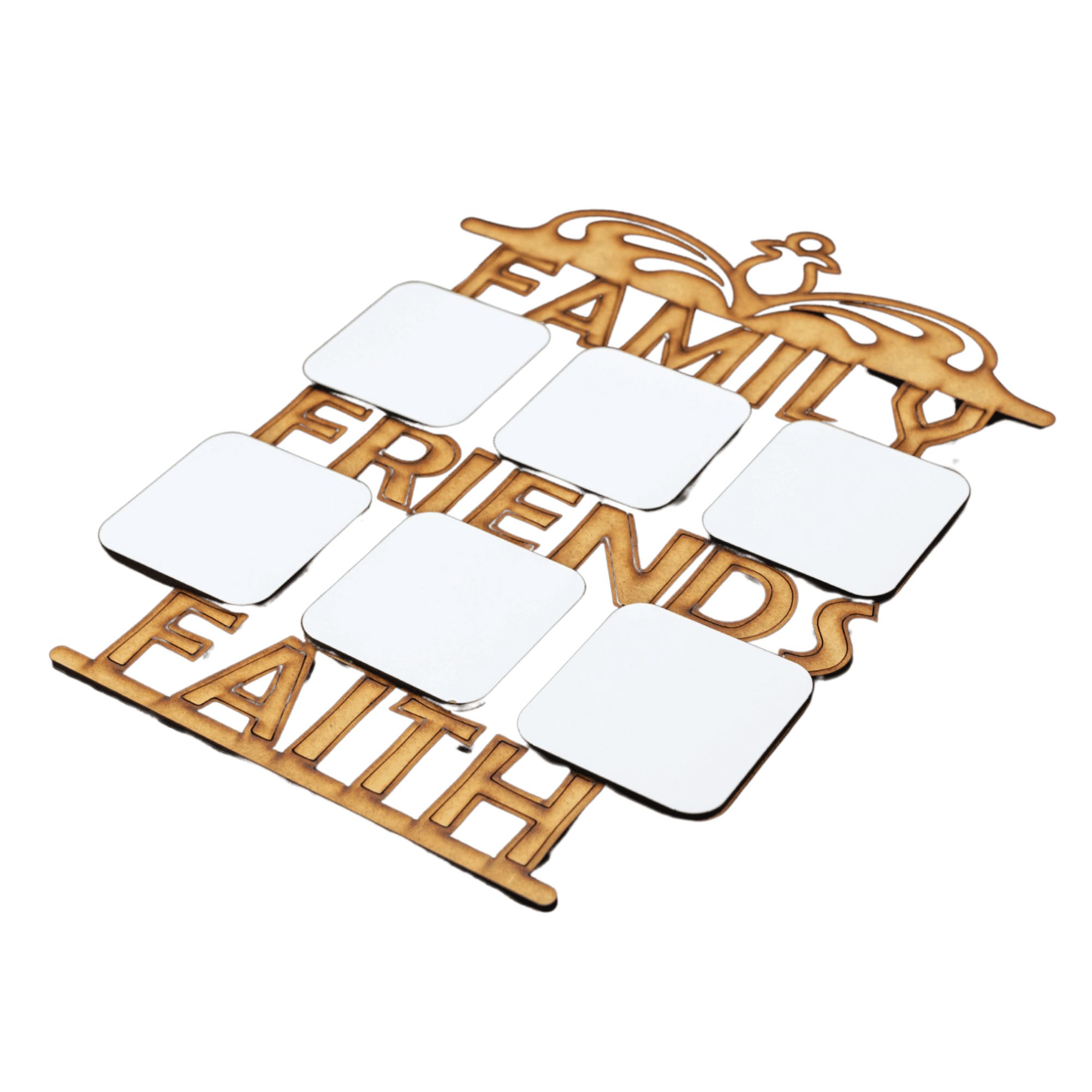 Family, Friends, Faith wooden frame with 6 pictures. made from durable material and the perfect gift to share pictures of family and friends